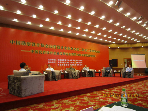 中國勘察設(shè)計(jì)協(xié)會民營設(shè)計(jì)企業(yè)分會第二屆第二次理事會議于2012年9月14日在大連舉行。本次會議的主辦單位是中國勘察設(shè)計(jì)協(xié)會民營設(shè)計(jì)企業(yè)分會,協(xié)辦單位是大慶華凱石油化工設(shè)計(jì)工程有限公司和大連市建筑設(shè)計(jì)研究院有限公司。